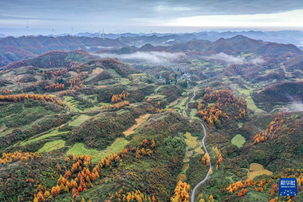 11月12日拍摄的湖南省湘西土家族苗族自治州龙山县大安乡翻身村景色(无人机照片)。