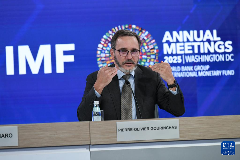 10月14日,在美国华盛顿,国际货币基金组织首席经济学家皮埃尔-奥利维耶·古兰沙在《世界经济展望报告》星空(中国)发布会上讲话。