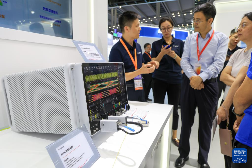10月15日,参观者在万里眼公司展台了解新一代超高速实时示波器。