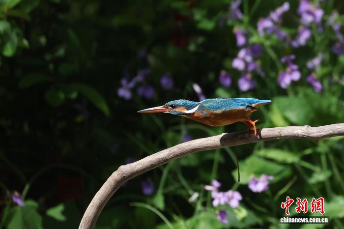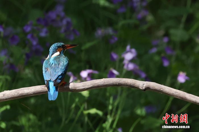 4月7日,南京古林公园内,翠鸟停歇在水边的树枝上休憩。中新社记者 泱波 摄