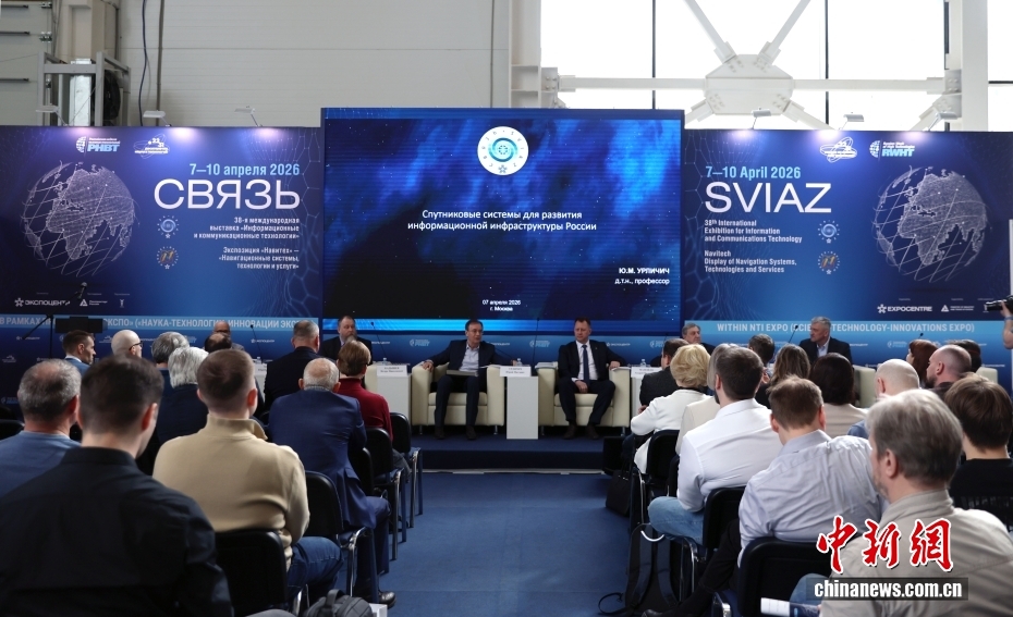 当地时间4月7日,第38届俄罗斯国际信息与通信技术展览会在莫斯科开幕。本届展会是2026年“俄罗斯高科技周”的一部分。该展会是俄罗斯、独联体及东欧地区规模最大的信息技术展会和专业平台,来自中国安徽、河北、广东、湖南、江苏、陕西、北京等省区市的众多企业参展。图为展览会期间举行的专业圆桌会。