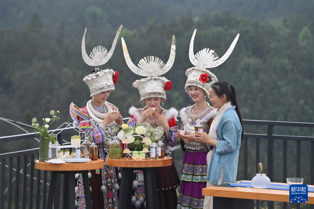 4月12日,广西柳州市融水苗族自治县举办粤桂协作大苗山踏青茶旅文化活动,茶商和游客欢聚苗乡,赏春色、品春茶、话产业发展。