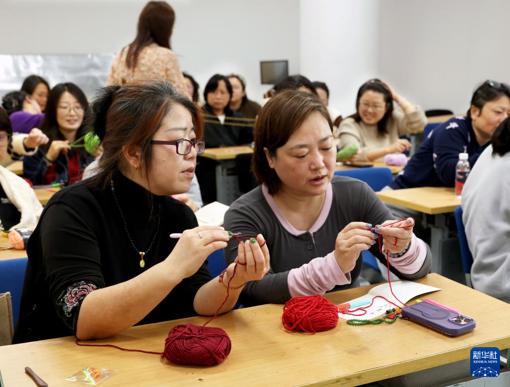 4月13日,在上海市群众艺术馆,“创意钩针”课的学员们在练习。