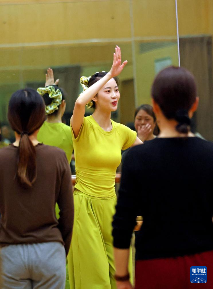 4月13日,在上海市群众艺术馆,“民族民间舞入门”课的老师为学员们讲解舞蹈动作。