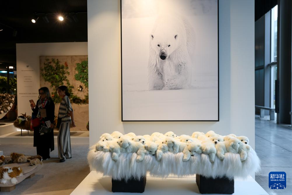 4月21日,在意大利米兰国际会展中心,参观者在米兰家具展上观看展品。